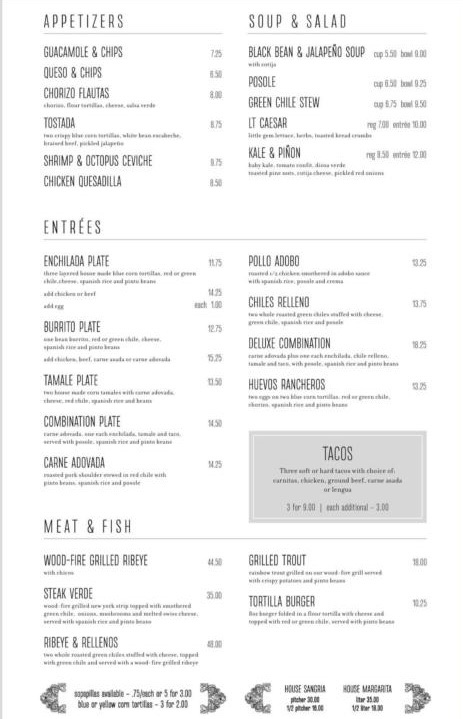 Carne Adovada, posole, spanish rice, pinto beans, one each enchilada, tamale and taco